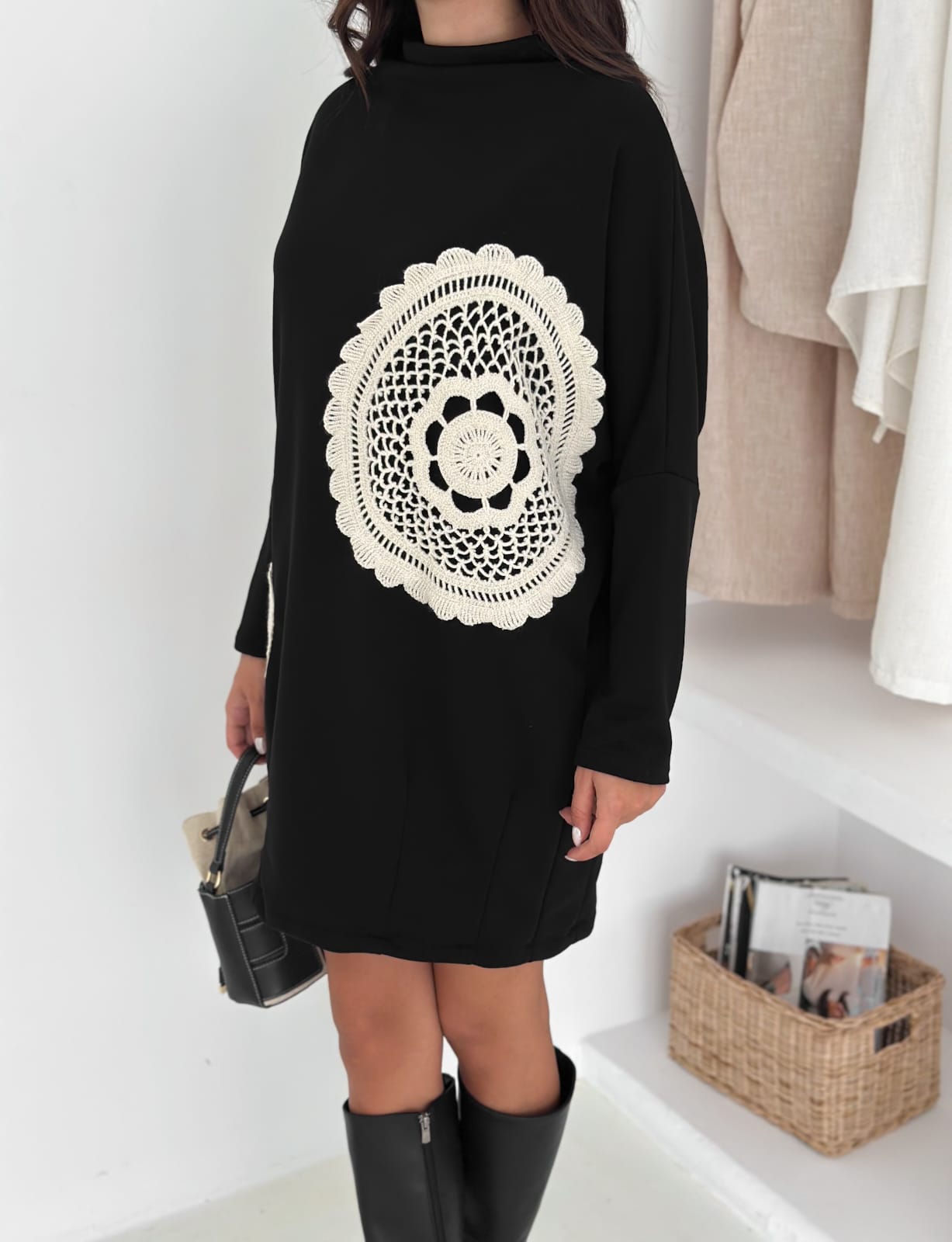 Dantelli-3iplik-sweat-tunik-Siyah