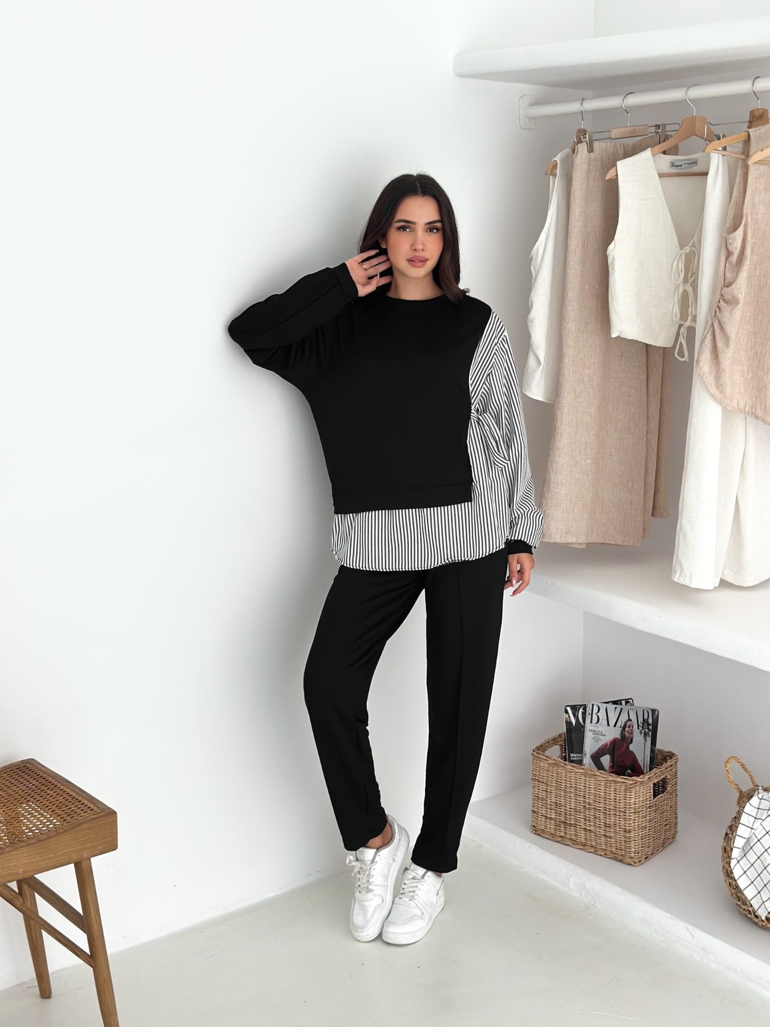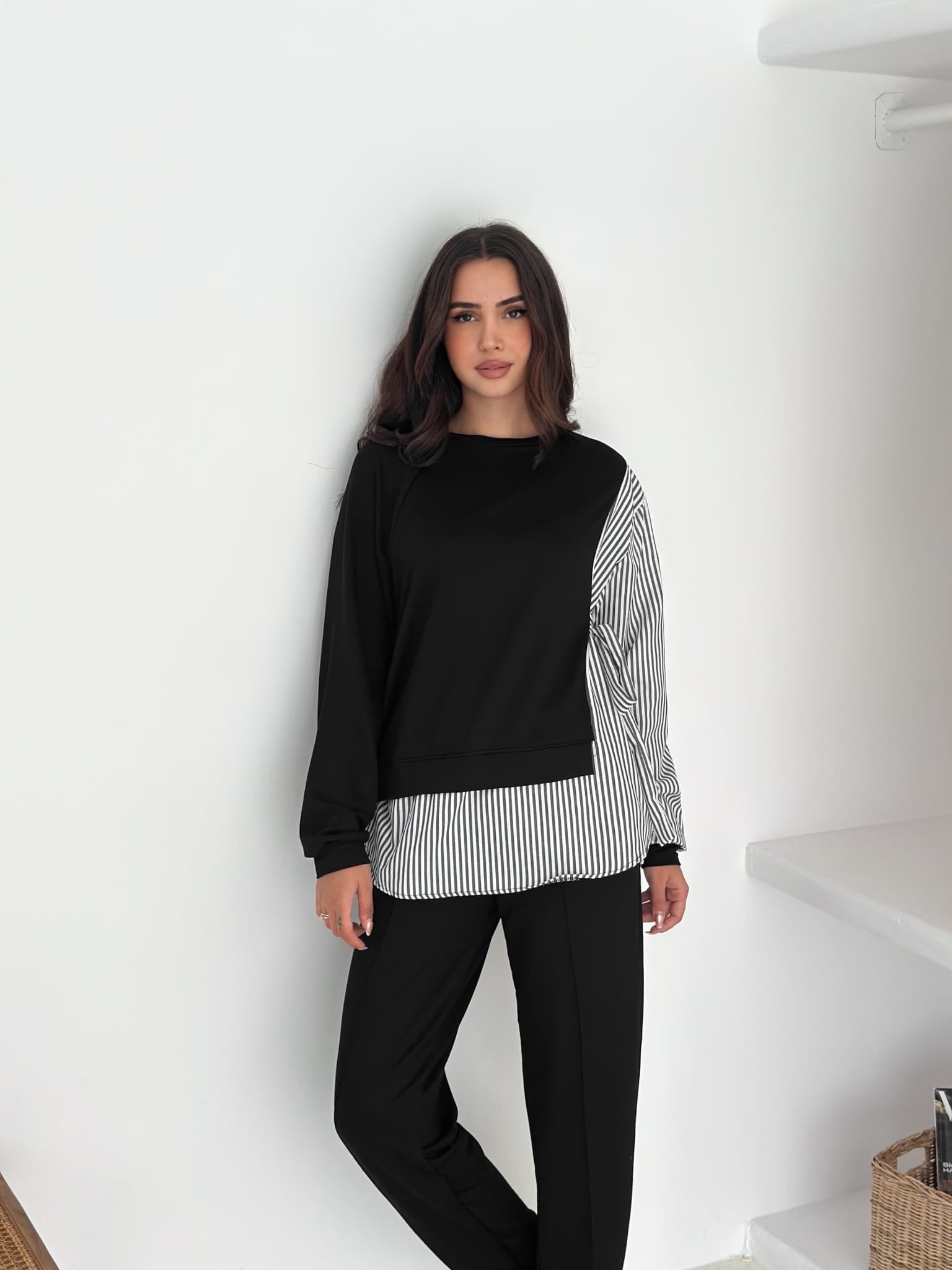 Sweat-Gömlek-Kombinli-Takım–Siyah-cizgili