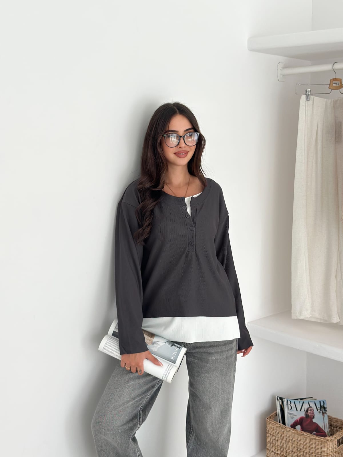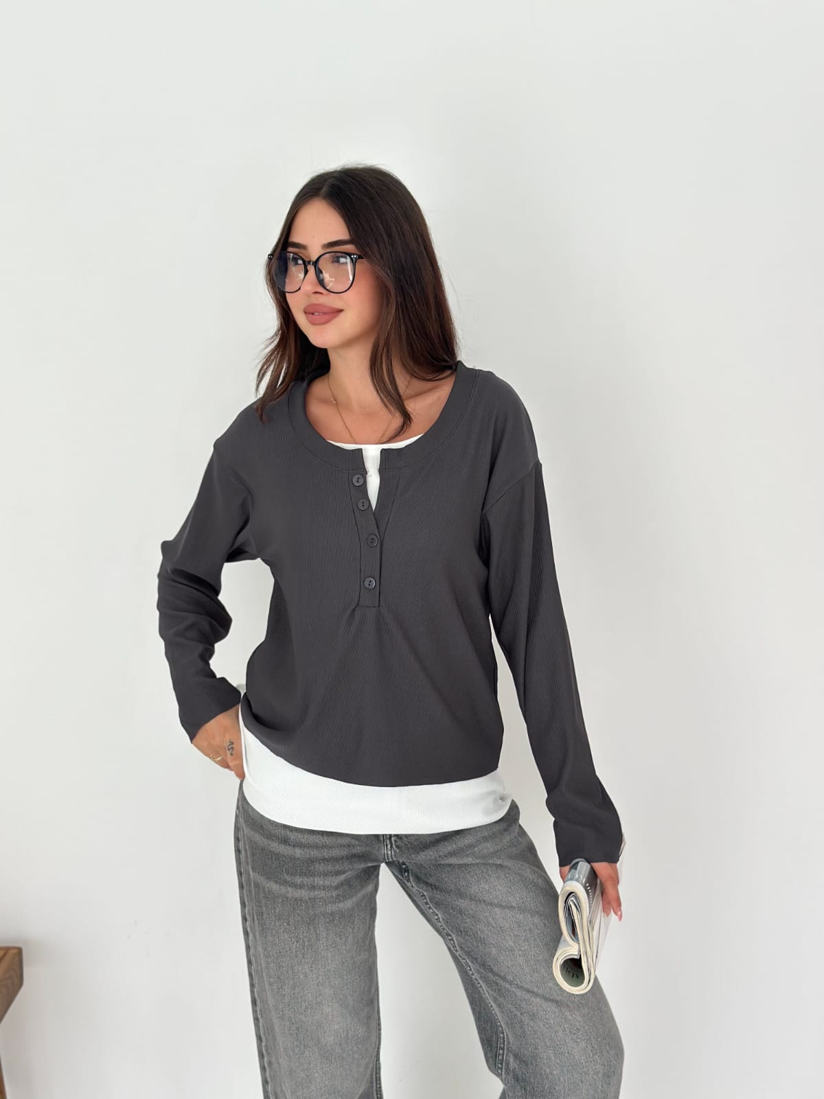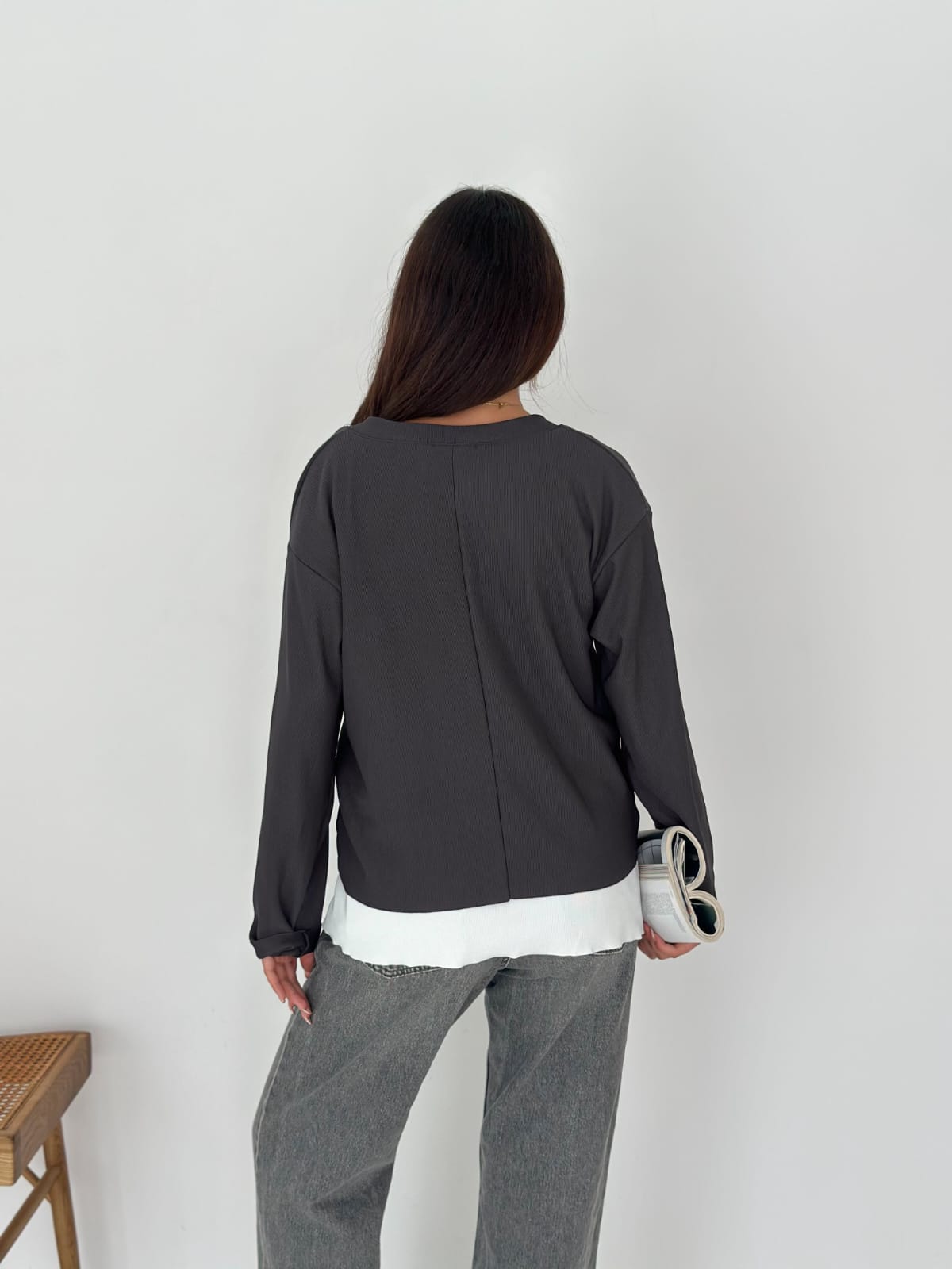 Sweat Kombinli 2 iplik Bluz-Antrasit
