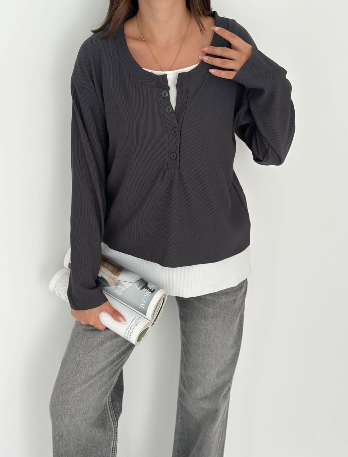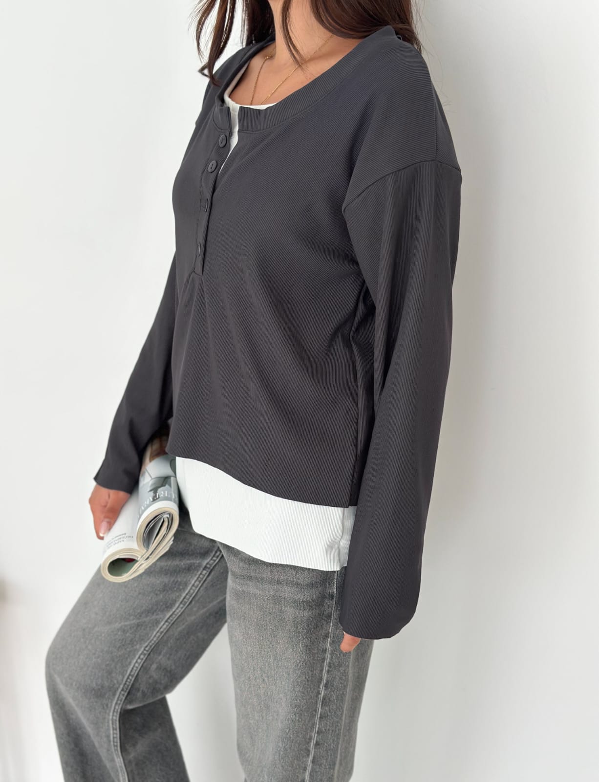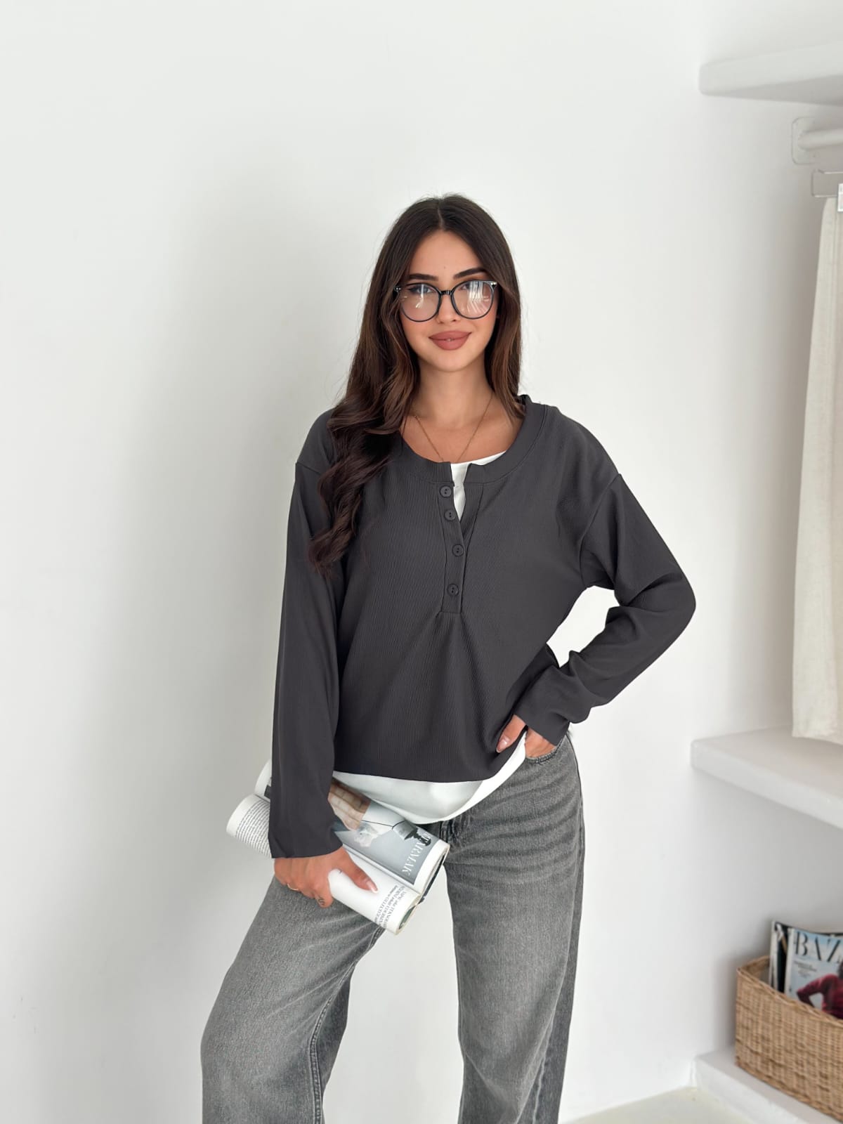 Sweat Kombinli 2 iplik Bluz-Antrasit