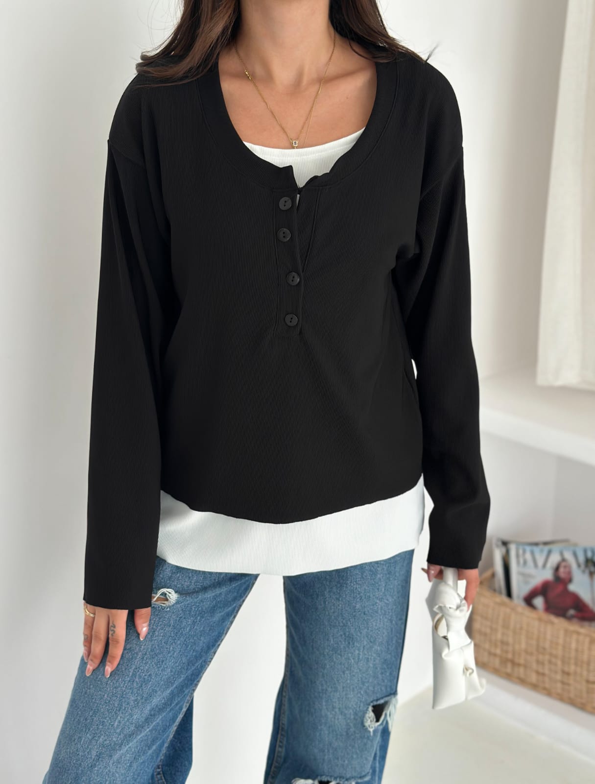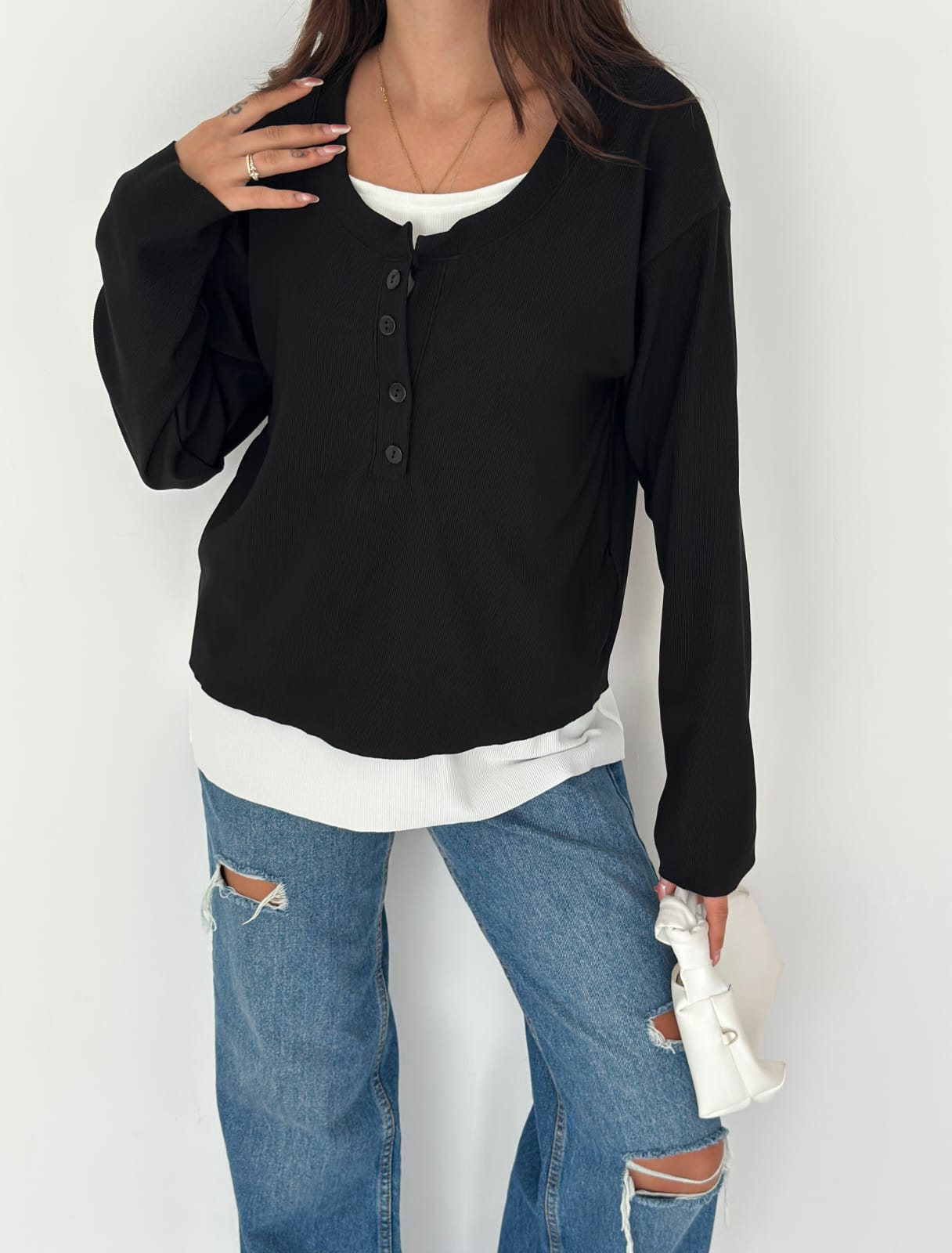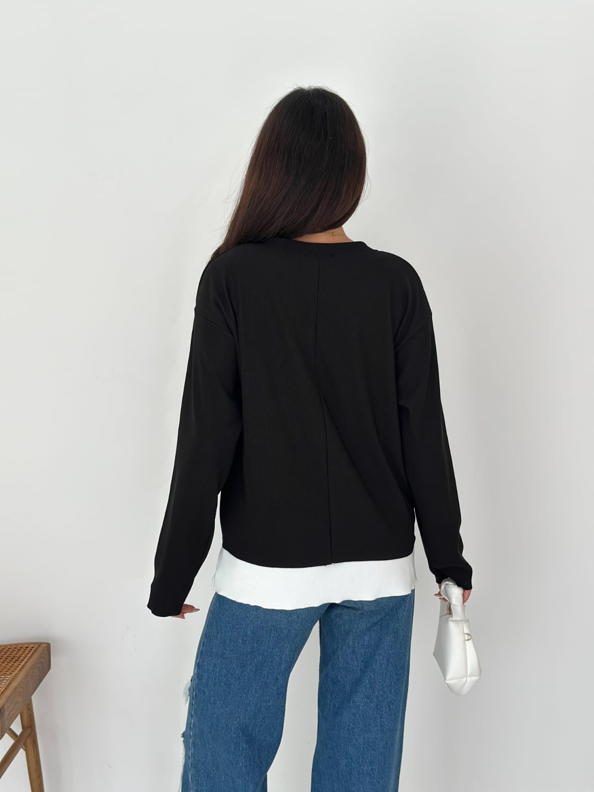 Sweat Kombinli 2 iplik Bluz–Siyah