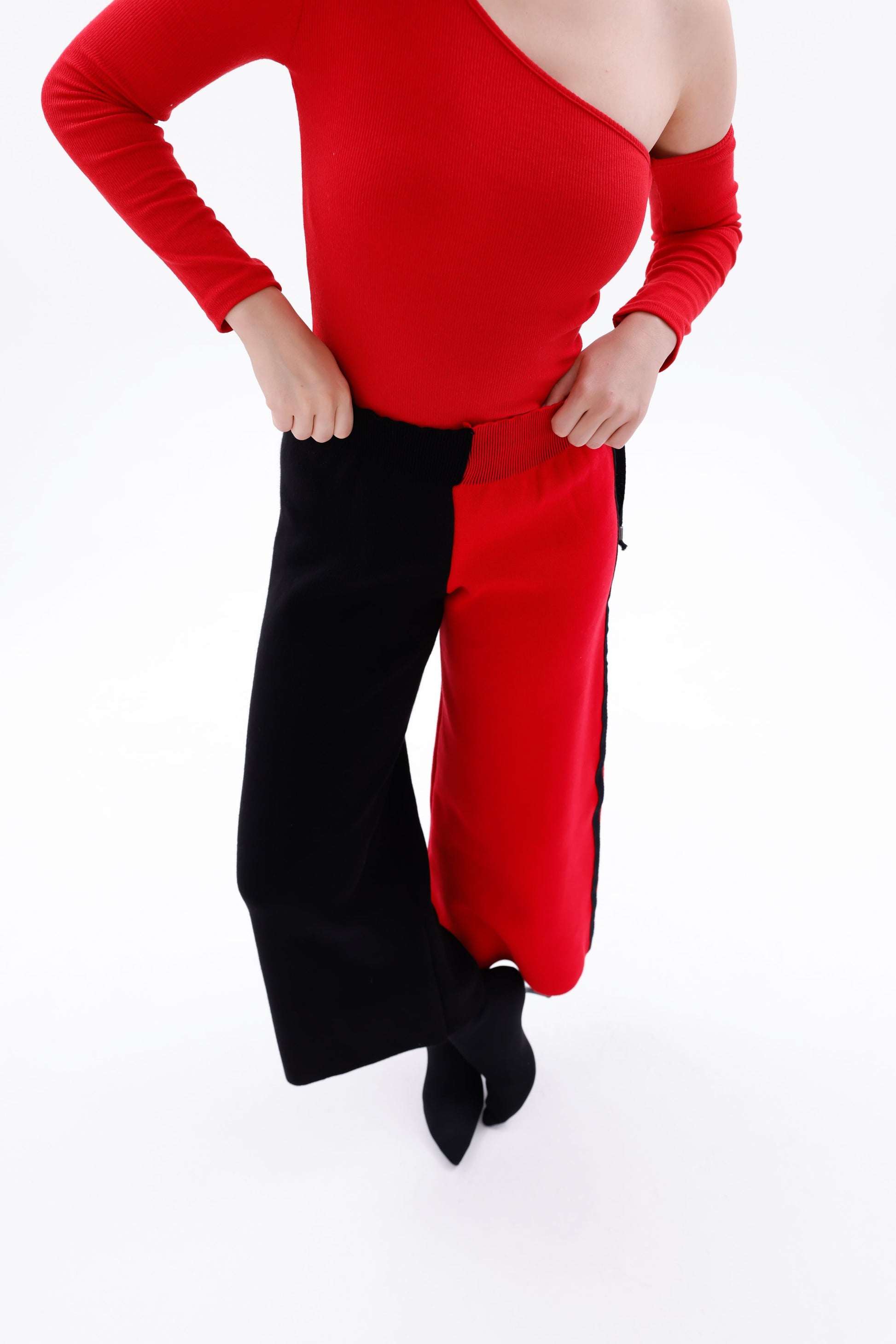 TRİKO SİYAH/KIRMIZI PANTOLON
