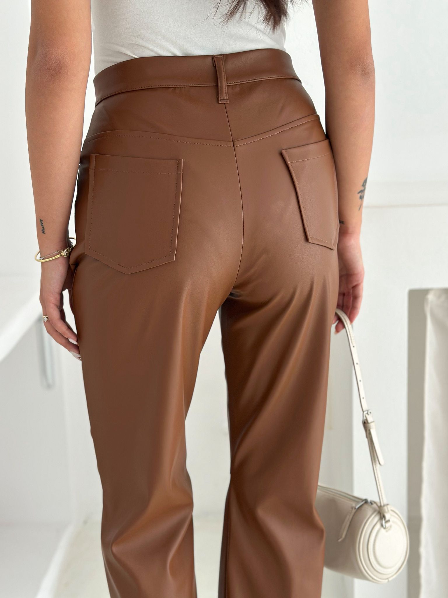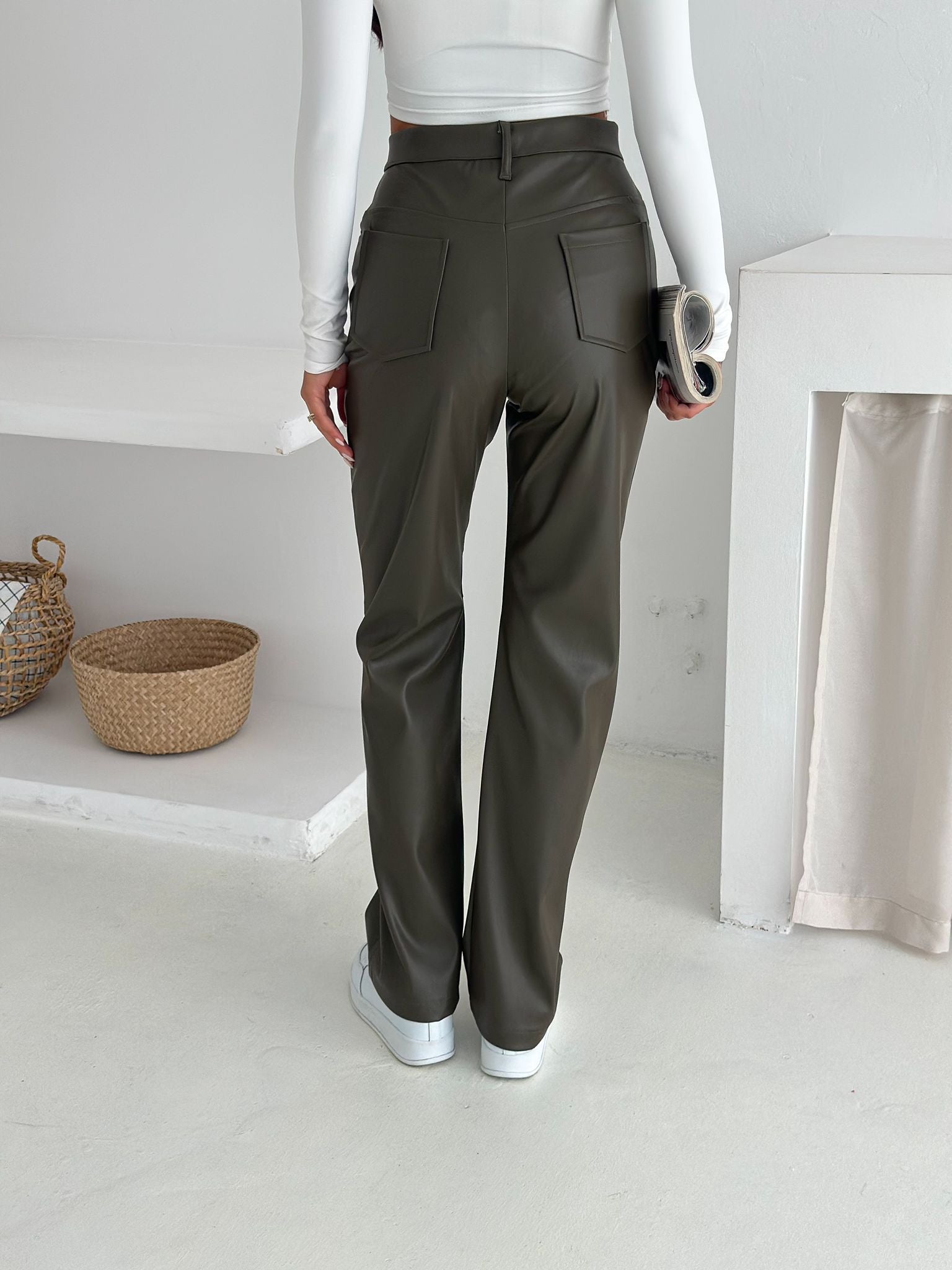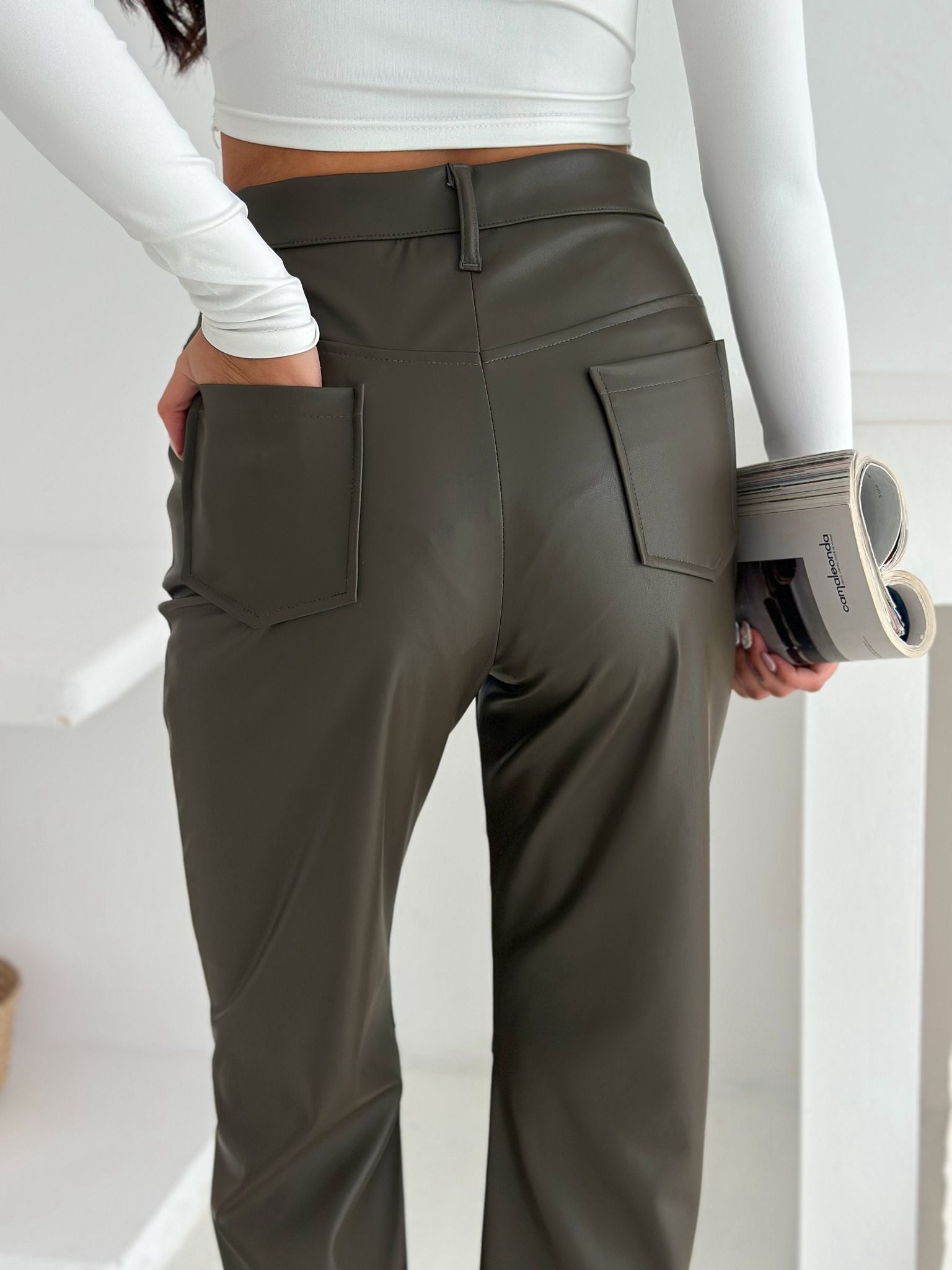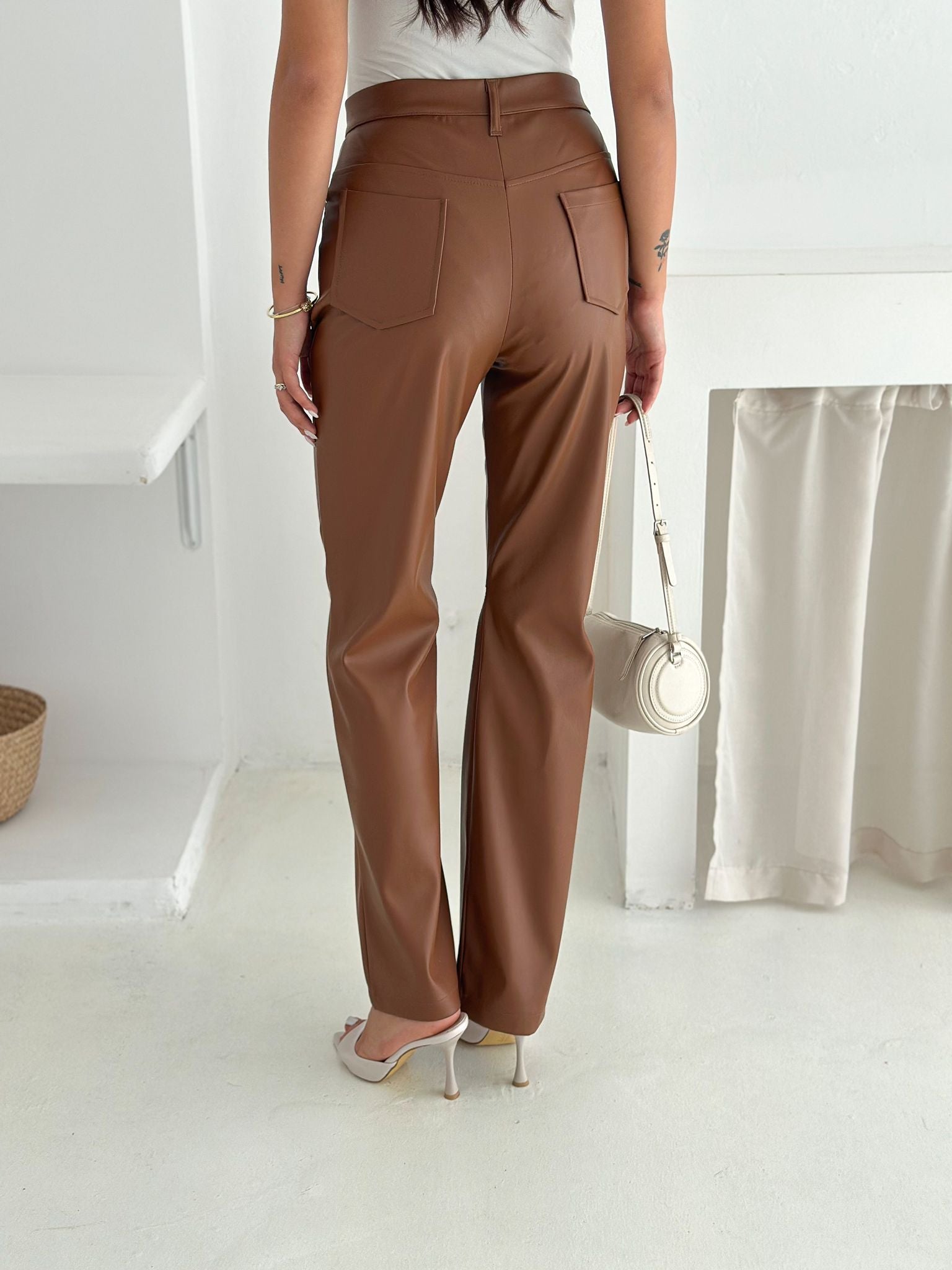 Zamansız ve şık bir duruşa sahip Deri pantolon, hem ofis kombinlerinde hem günlük kullanımlarda mükemmel bir tamamlayıcıdır.