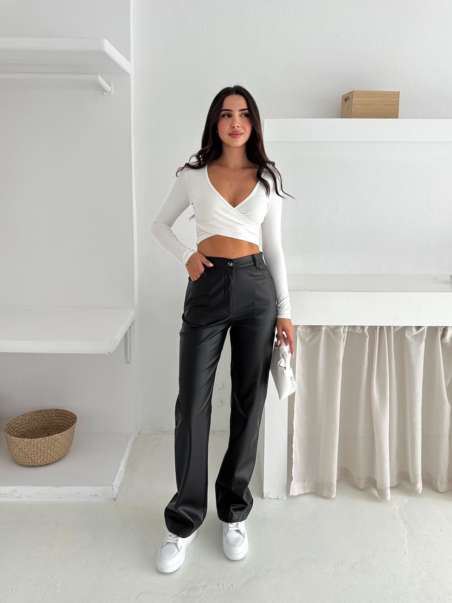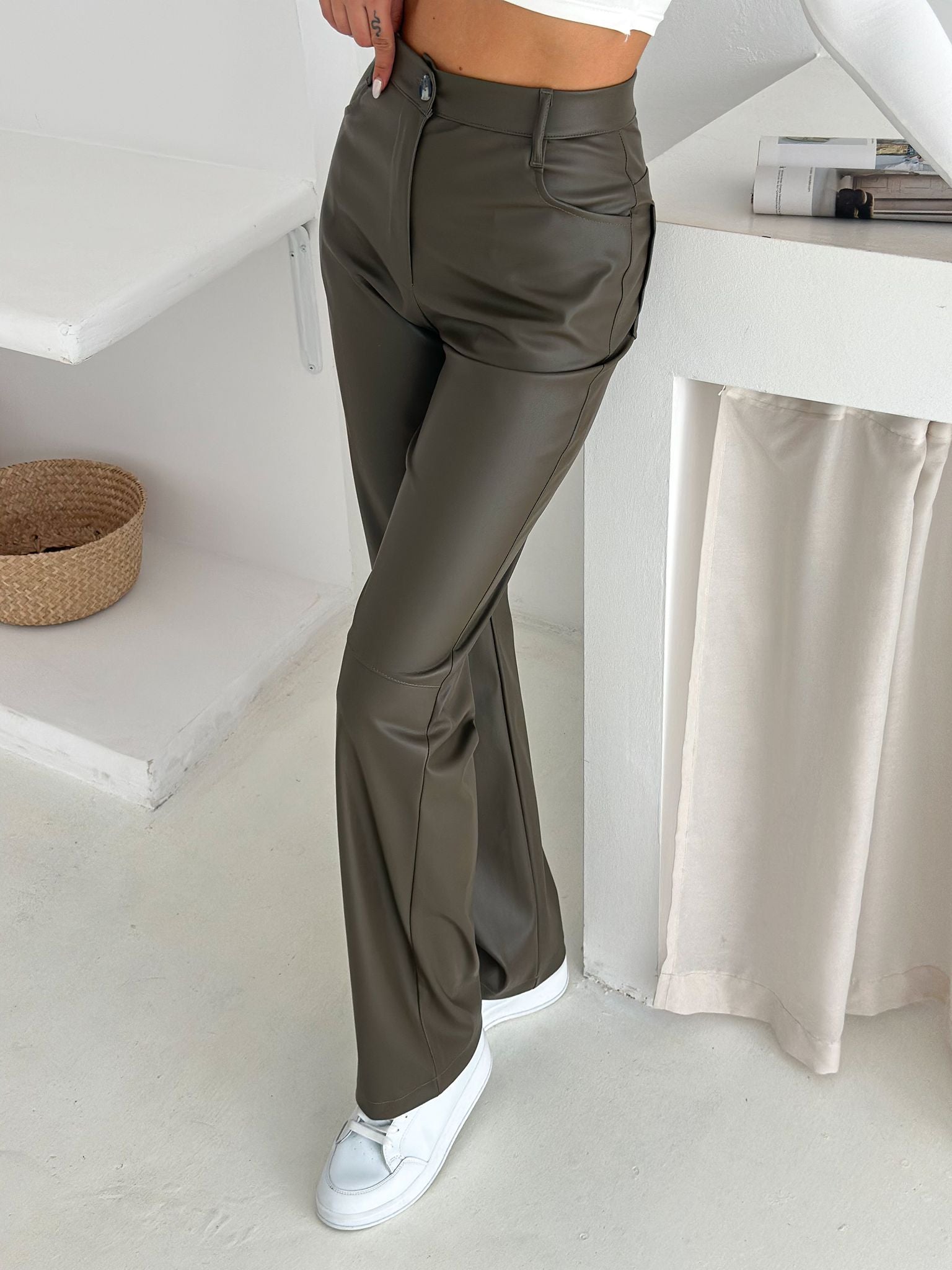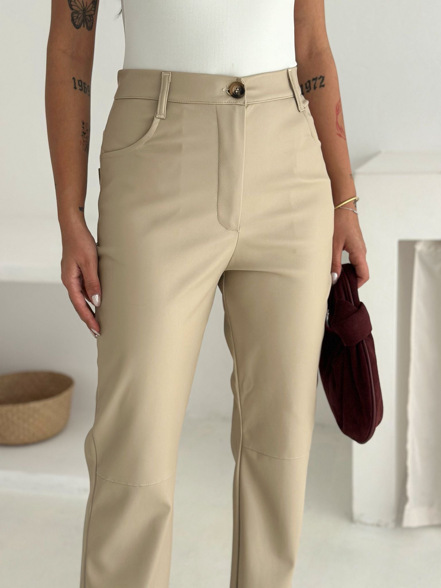 Zamansız ve şık bir duruşa sahip Deri pantolon, hem ofis kombinlerinde hem günlük kullanımlarda mükemmel bir tamamlayıcıdır.