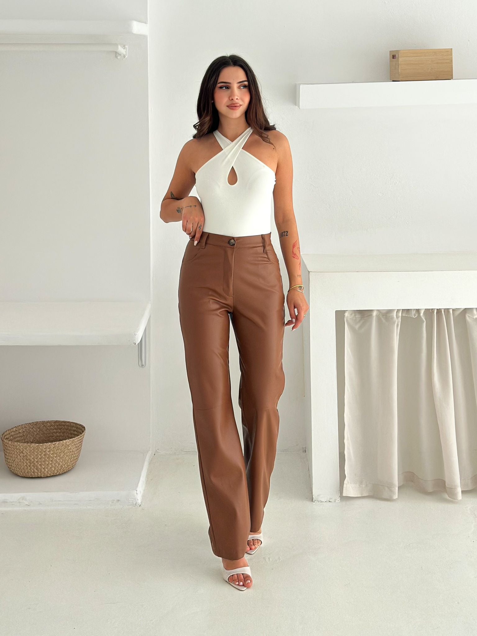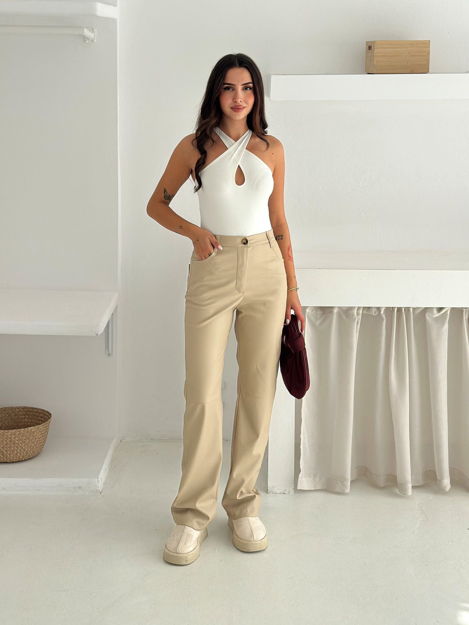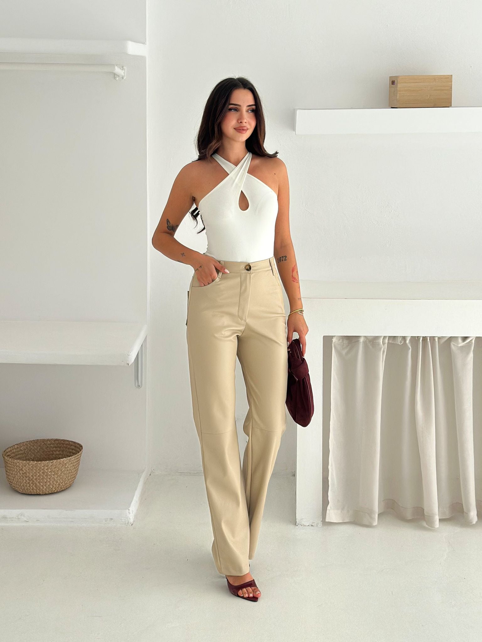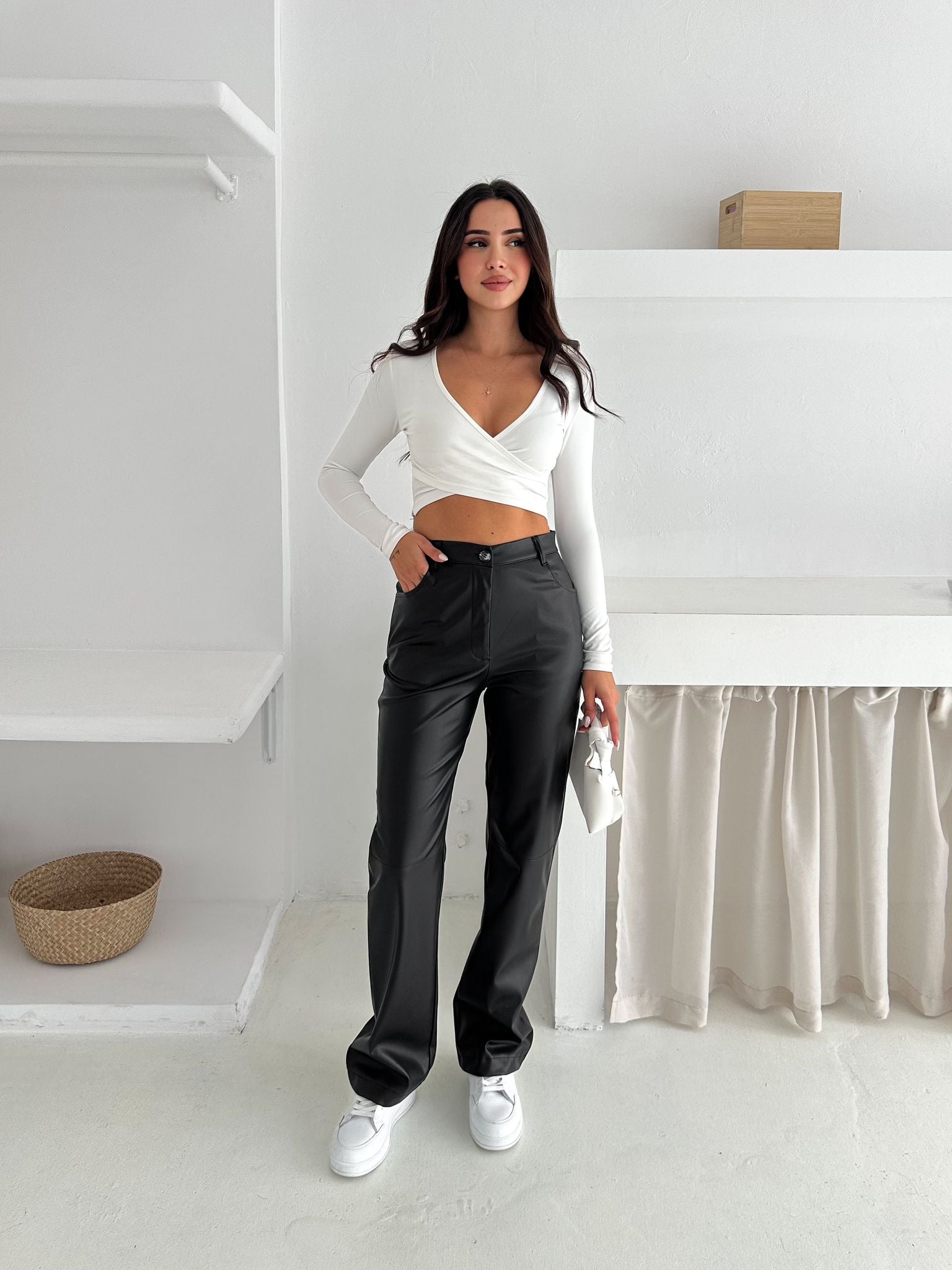 Zamansız ve şık bir duruşa sahip Deri pantolon, hem ofis kombinlerinde hem günlük kullanımlarda mükemmel bir tamamlayıcıdır.